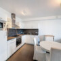 Il se compose d’un hall d’entrée donnant accès à un spacieux et lumineux séjour/salle à manger de ±33 m² avec cuisine ouverte. À l’arrière de l’appartement, vous avez un accès direct à la terrasse orientée ouest. L’espace nuit comprend un WC séparé, une première chambre de ±14,5 m², une seconde de ±10,5 m², une salle de bains avec baignoire de ±4 m² ainsi qu’un espace buanderie pour machine à laver et sèche-linge.