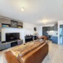 À l’entrée, un hall spacieux donne accès aux toilettes séparées. L’espace de vie est accessible par une porte qui délimite clairement les deux zones. Le salon/salle à manger, lumineux et spacieux, mesure environ 22 m². La cuisine est ouverte, entièrement équipée, et dispose d’un espace buanderie. Depuis l’espace de vie, vous accédez à une superbe terrasse orientée sud-ouest de ± 11 m², un espace idéal et confortable pour profiter de l’extérieur.