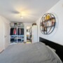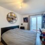 Côté nuit, la chambre, spacieuse et lumineuse, mesure ± 14 m². Elle offre suffisamment d’espace pour accueillir un lit, une armoire et un bureau, parfait pour le télétravail. La salle de douche se trouve juste à côté et est séparée par une porte.