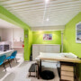 Le rez-de-chaussée se compose d’un garage fermé et de deux pièces en enfilade totalisant ±18 m², idéales pour une activité professionnelle ou facilement convertibles en chambre. À l’arrière, une annexe de ±8,5 m² s’ouvre sur l’espace extérieur, apportant lumière et fonctionnalité.