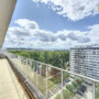 Situé au 12ème étage sur 12 le bien se compose comme suit : A l’entrée vous avez accès au hall et à la cuisine équipée fermée de +-7m², le salon et la salle à manger sont communs et très lumineux. Vous avez accès à la terrasse de +- 13m² orienté sud ouest avec une vue sur le Canal. A l’arrière de l’appartement, la première chambre mesure +- 9m², la deuxième chambre +-12,5m² et la salle de douche.